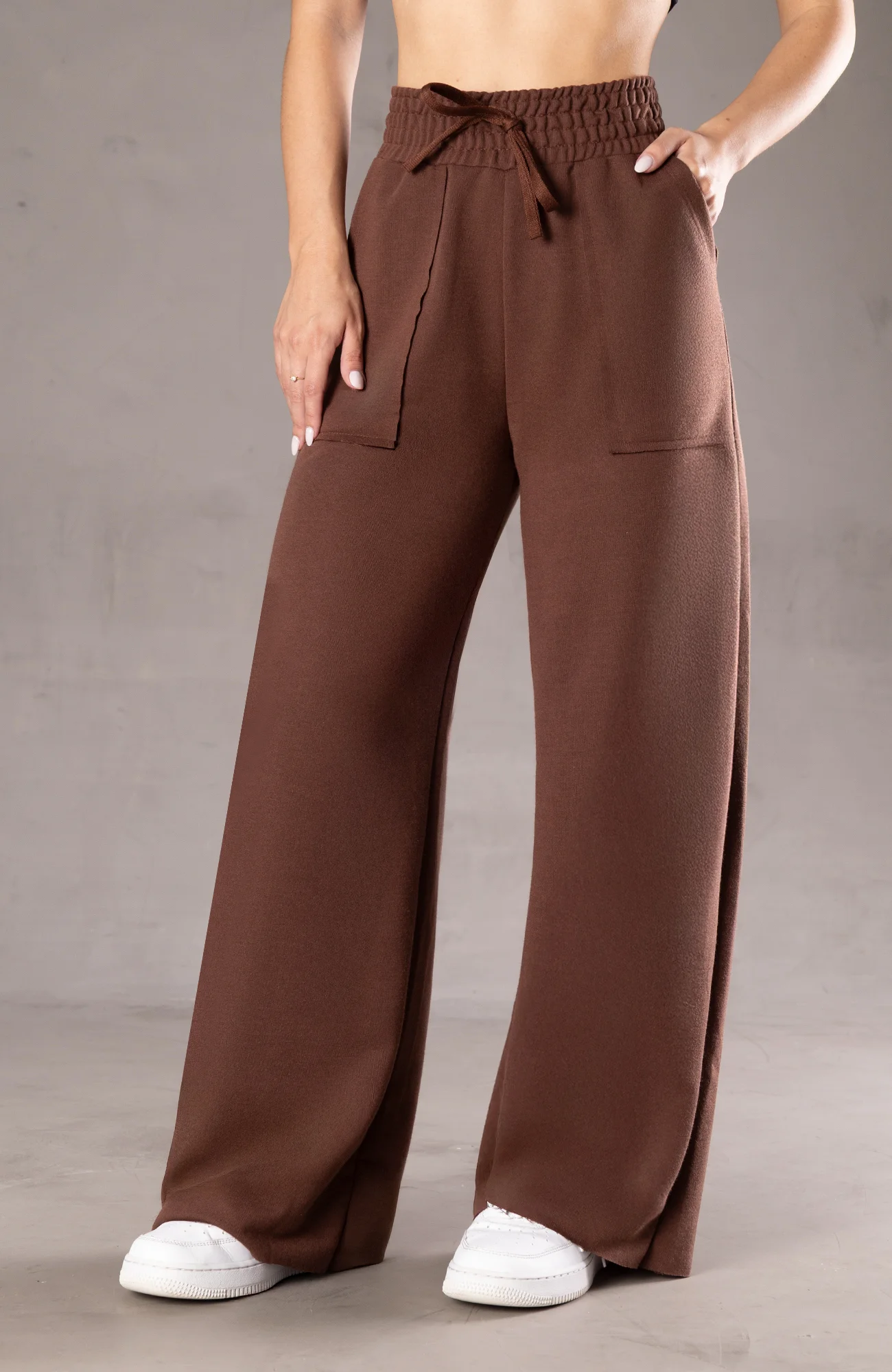A calça pantalona de moletinho é uma peça de roupa confortável e estilosa, conhecida por sua modelagem ampla e elegante, combinada com o moletinho, um tecido macio e casual, frequentemente utilizado em roupas de lazer.